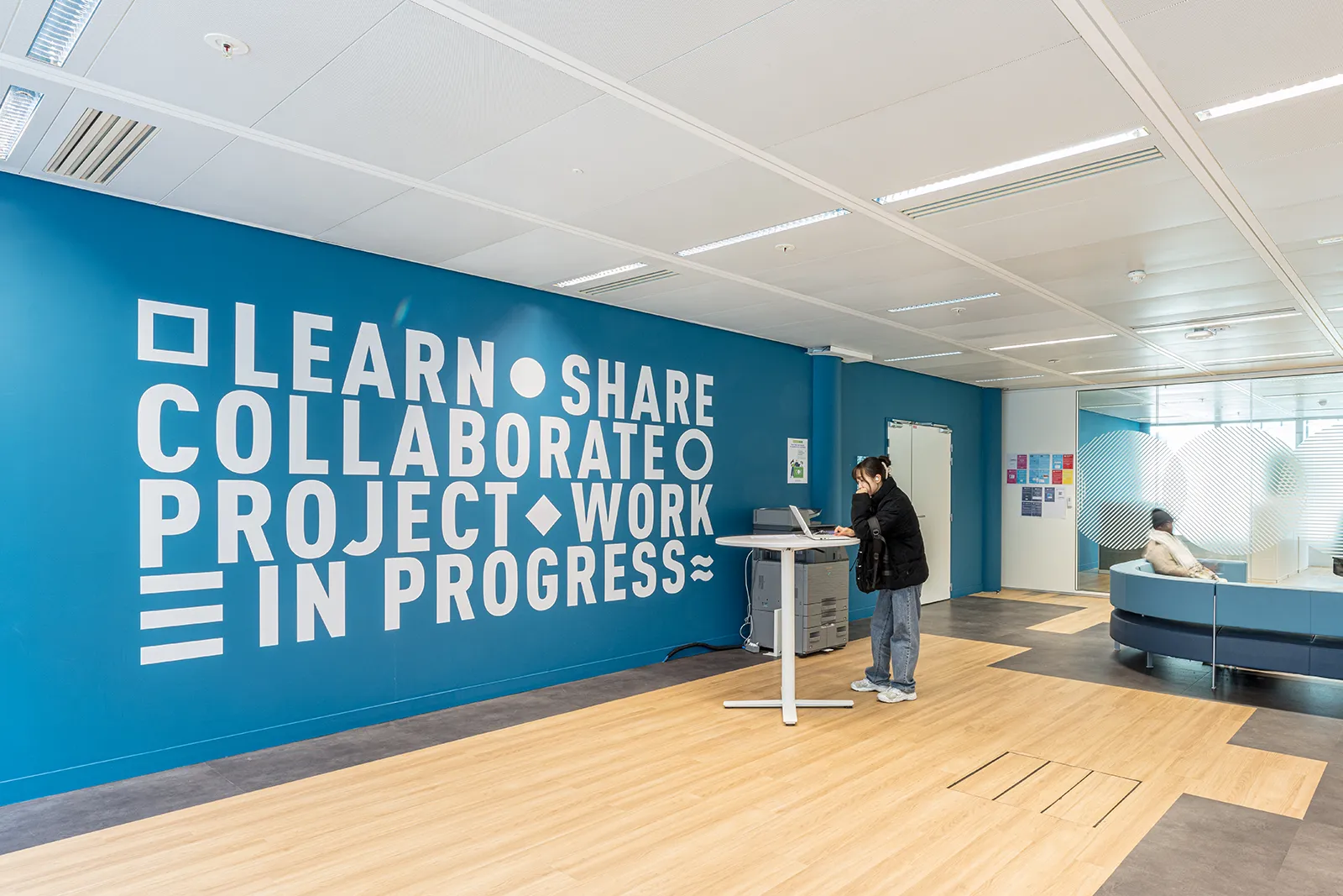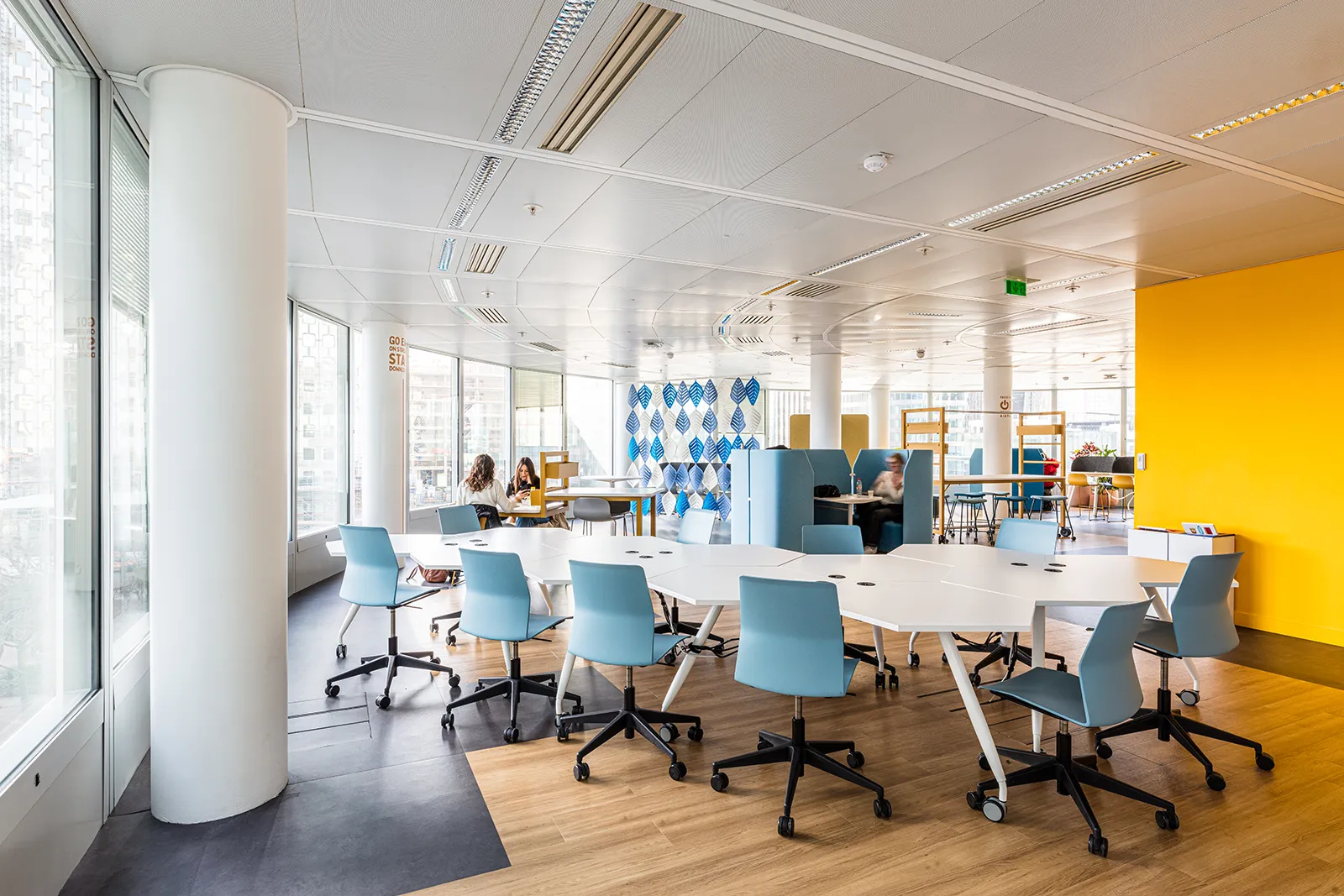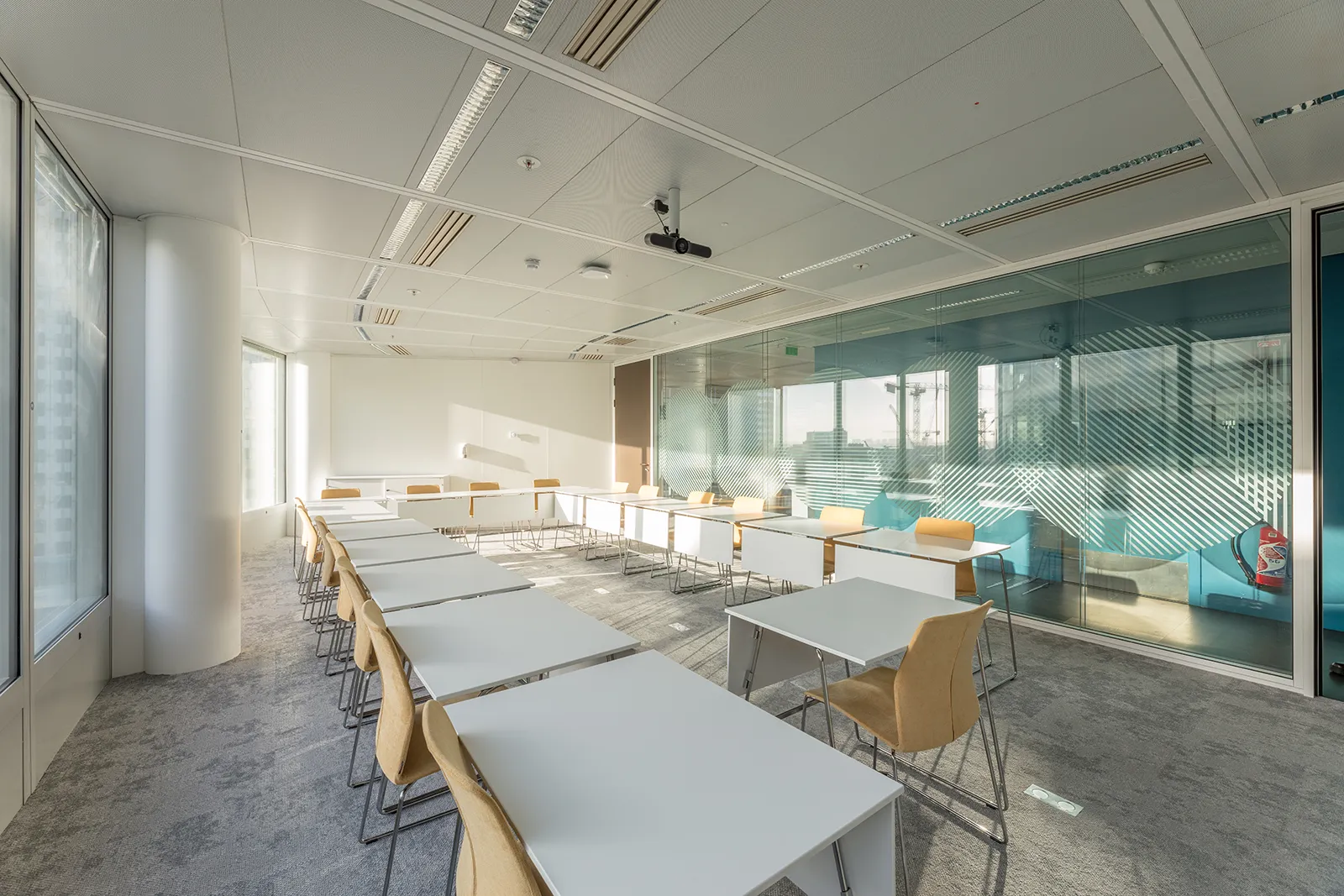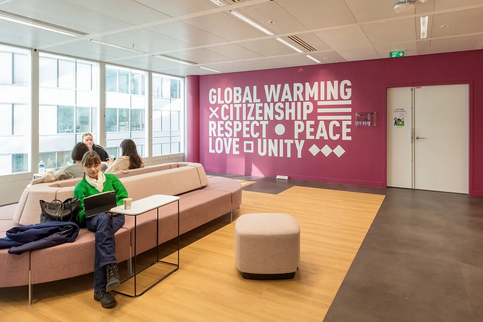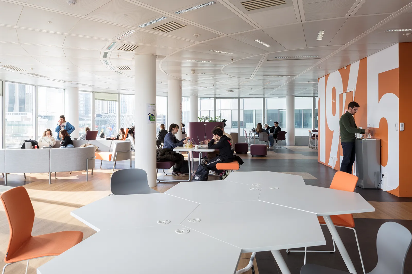 Le projet s’implante dans l’une des tours de Cœur Défense, un choix stratégique en cohérence avec les orientations pédagogiques des établissements. Être au plus proche de l’environnement économique et institutionnel de La Défense constitue un levier pédagogique fort, qui se reflète à la fois dans l’implantation du campus et dans la conception des espaces d’enseignement et de travail.