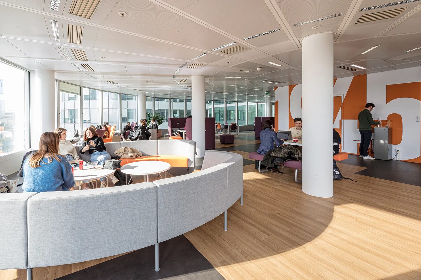 Déployé sur neuf niveaux et environ 13 000 m², le campus accueille près de 2 500 étudiants, dont une part significative d’étudiants internationaux. Le programme intègre, au-delà des salles de cours, amphithéâtres et espaces administratifs, de vastes plateformes collaboratives favorisant le travail en groupe, un incubateur ainsi que des espaces dédiés aux activités informelles et à la vie étudiante.
